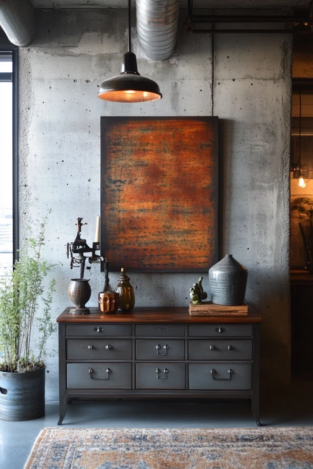 - Home Offices: Use metal desks, concrete planters, and industrial lighting for a functional yet stylish workspace.