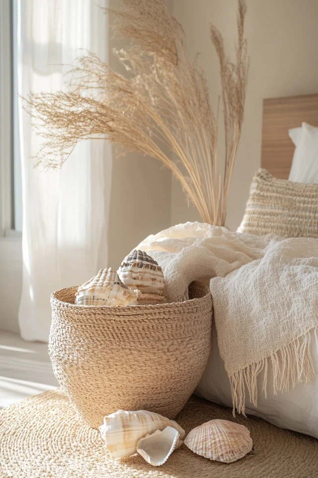 - Add a coral sculpture or a woven tray to your nightstand.