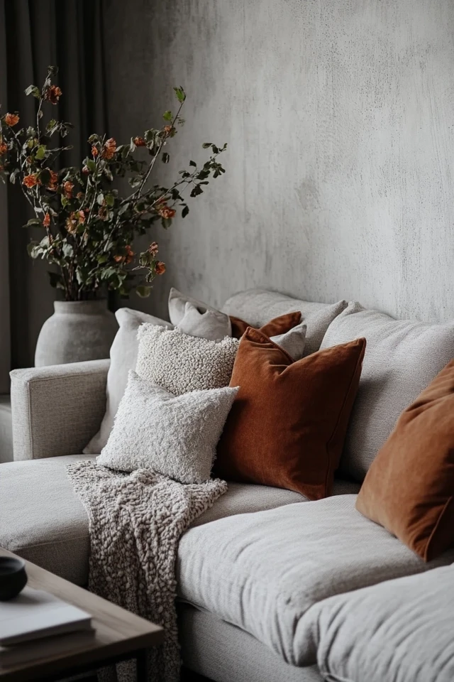 - Pillows: Mix velvet, linen, and wool pillows in various sizes for a tactile feast.