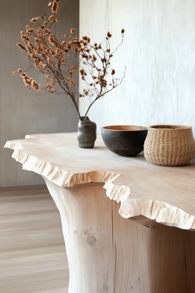 - Natural Textiles: Wool, linen, and cotton in neutral tones enhance the organic feel of pale wood.