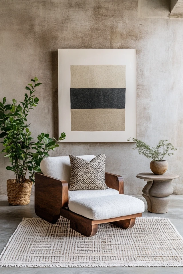 Rugs with simple patterns like chevrons, herringbone, or abstract lines can anchor a room and define the space.