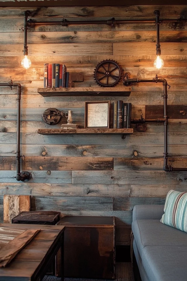 - Living Rooms: Use pipe shelving, pallet furniture, or repurposed wood tables to anchor your space.