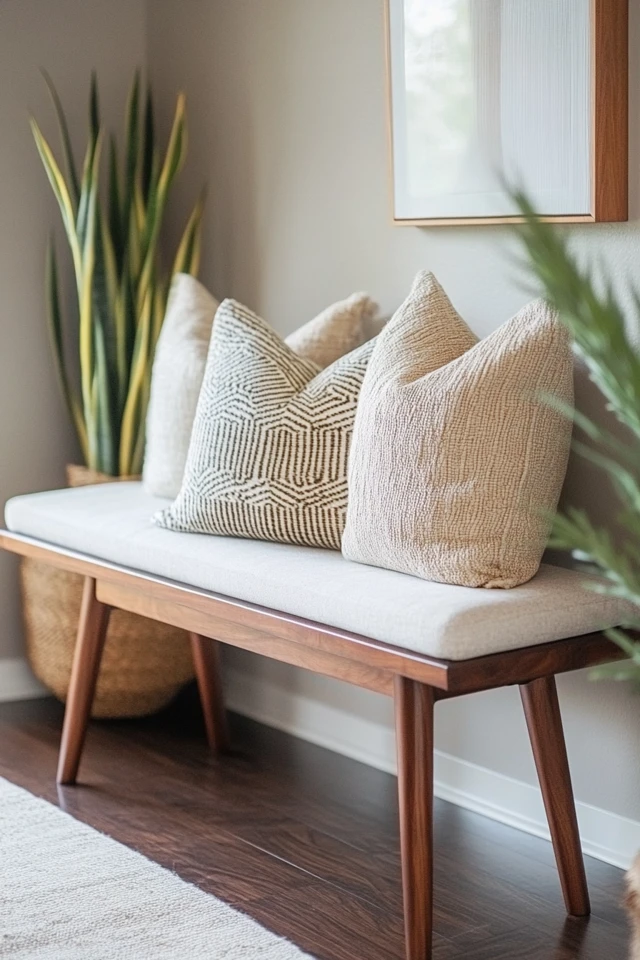 Pro Tip: Layer a soft throw over the bench for a relaxed, inviting vibe.