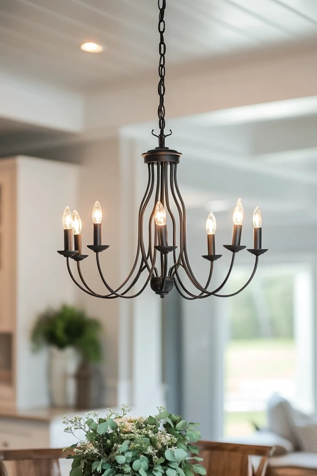 - Modern Farmhouse Chandeliers: Choose clean lines, geometric shapes, and minimalistic details for a contemporary vibe.