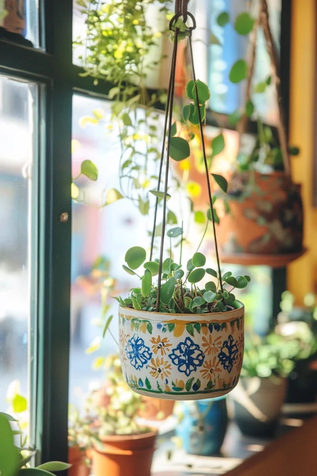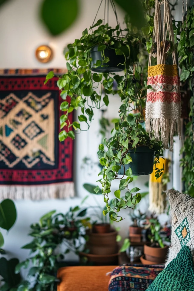 - How to Style It: Hang trailing plants in colorful macramé holders, or place a small fern inside a vintage birdcage for a charming display.
