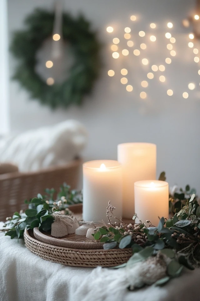 Decorate your dining table with a simple greenery runner interwoven with fairy lights or candles. Use fresh pine branches to create a wreath for your door or as accents in vases throughout your home. Incorporating natural greenery not only brings a festive touch but also fills your home with the refreshing scent of winter forests.
