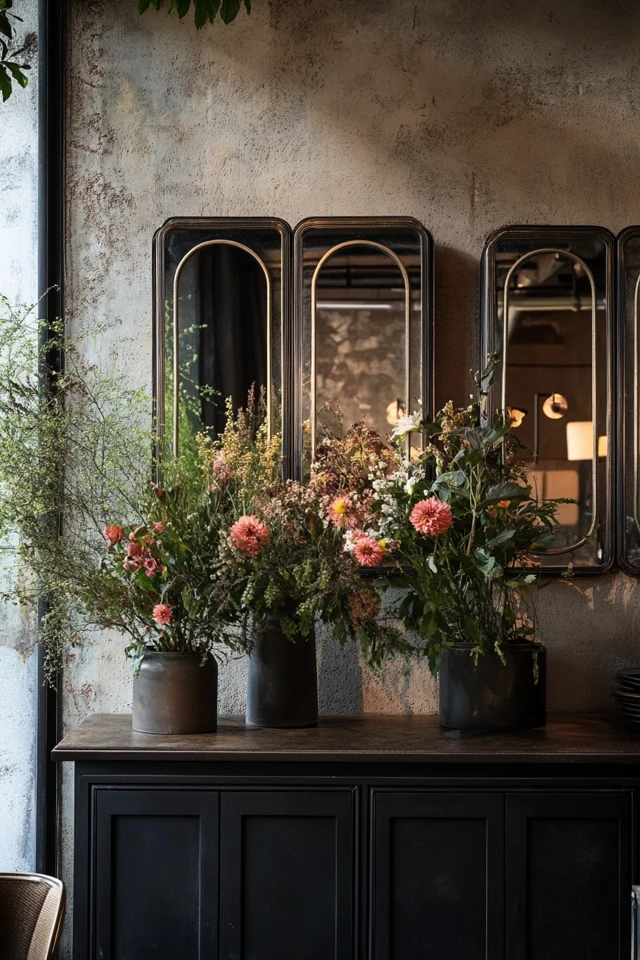 Layering mirrors with other decor elements creates a curated and dimensional look.