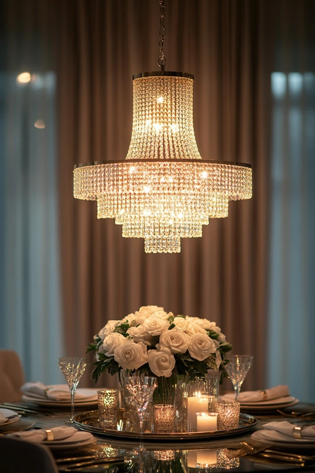 - Dining Rooms: Hang a crystal chandelier above the dining table as a stunning focal point.
