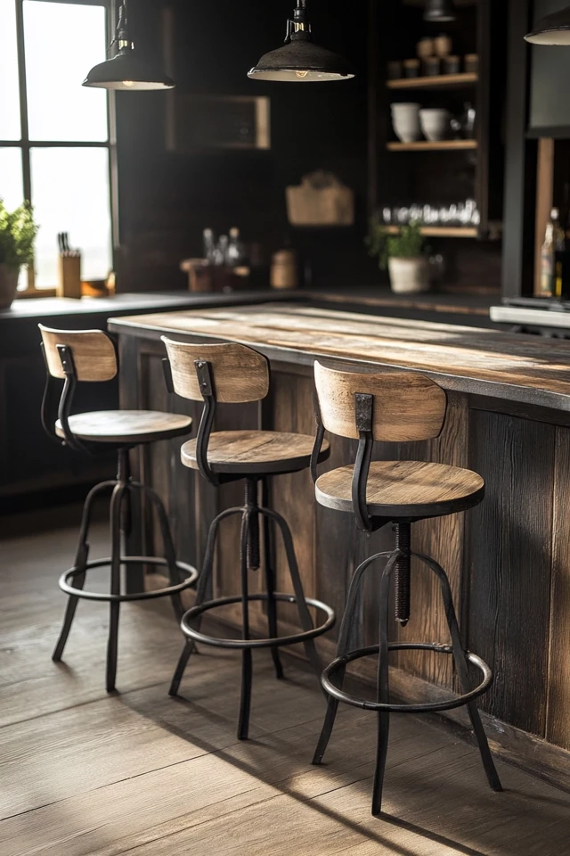 - Choose stools with reclaimed wood seats and vintage-inspired metal frames for a warm, cozy vibe.