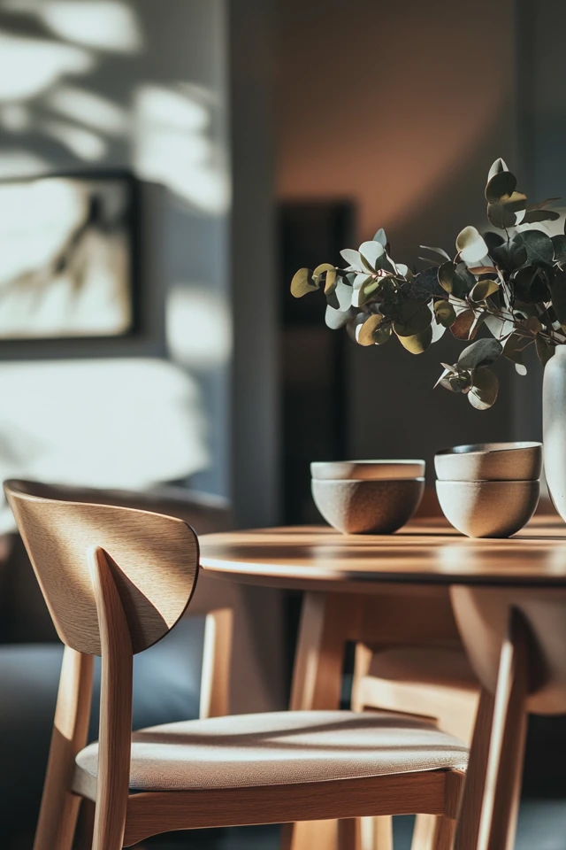 - Use a few carefully chosen accessories, such as a ceramic vase or a wooden bowl, as table decor.