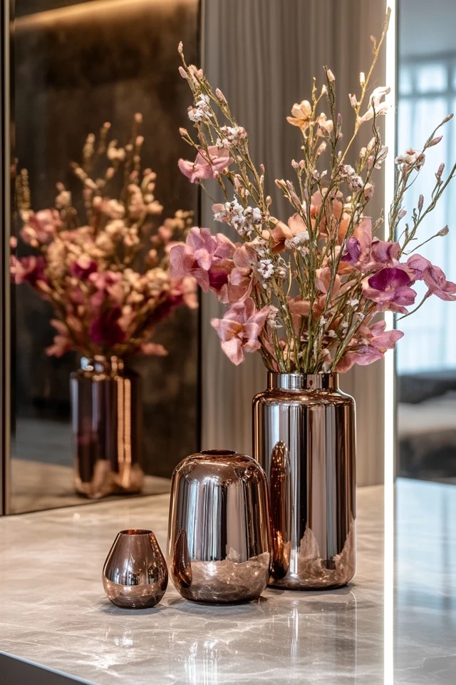 - Tip: Arrange reflective décor in groups of three for a balanced and intentional look.
