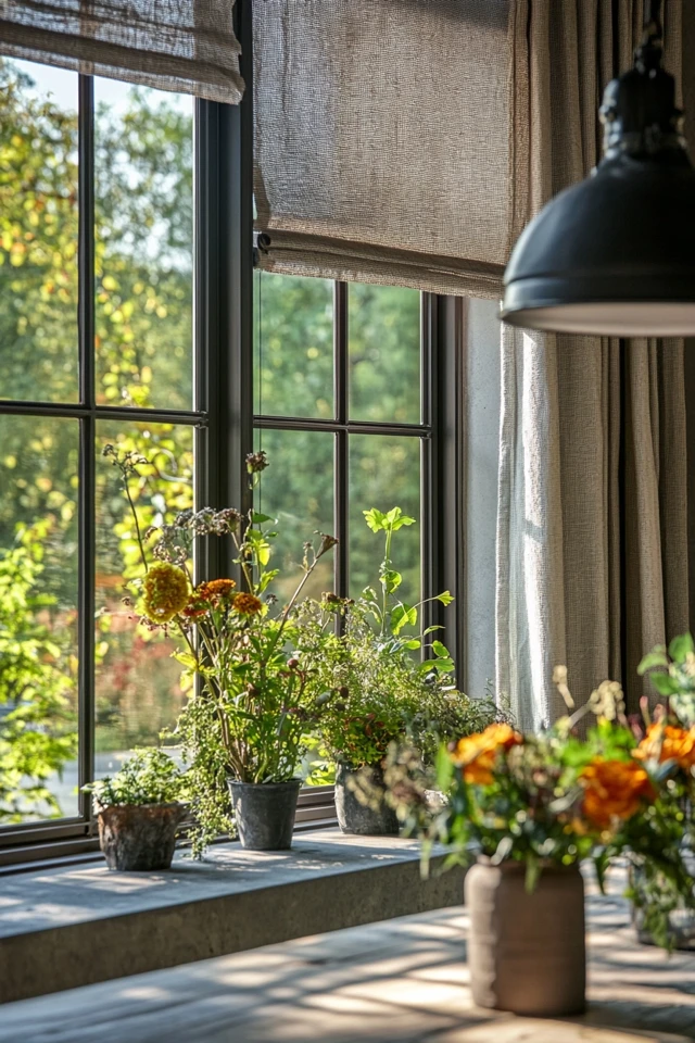 - Rustic Industrial: Use weathered wood blinds or distressed fabric shades for a vintage, lived-in feel.