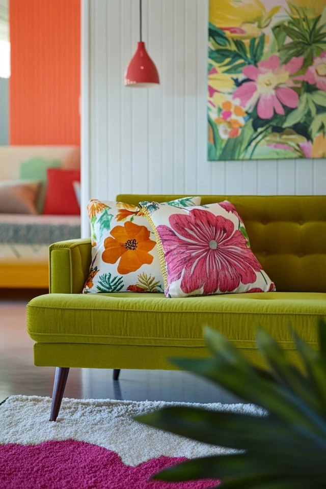 - Patterns and Solids: Pair solid-colored pillows in bold shades with retro-patterned ones.