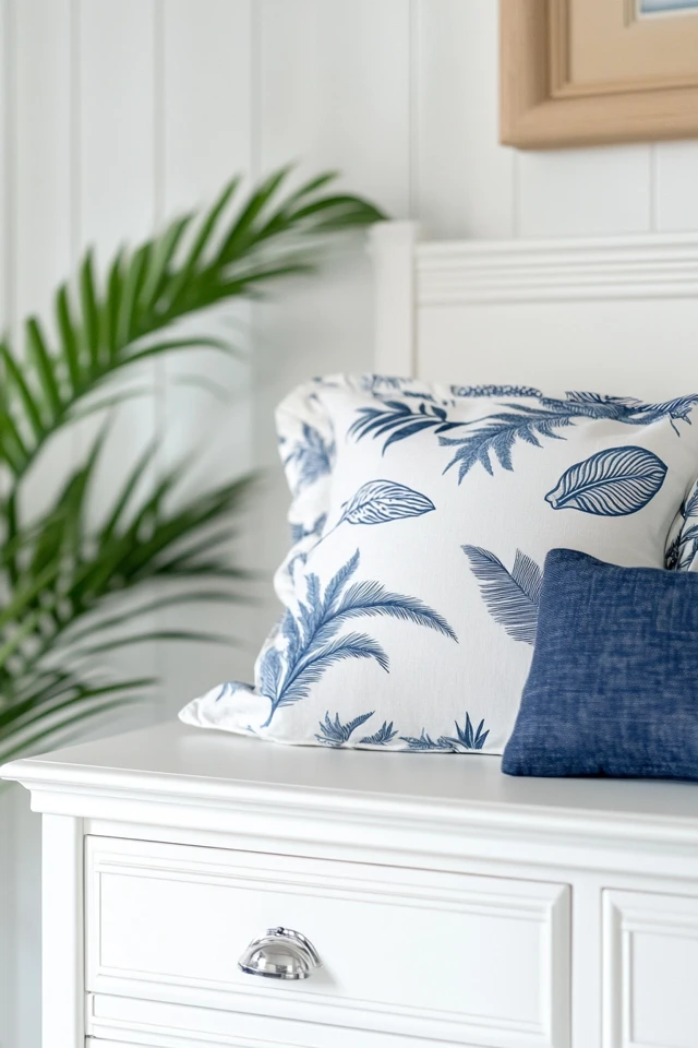 - Pair blue and white elements with natural textures like rattan, jute, or light wood for warmth.