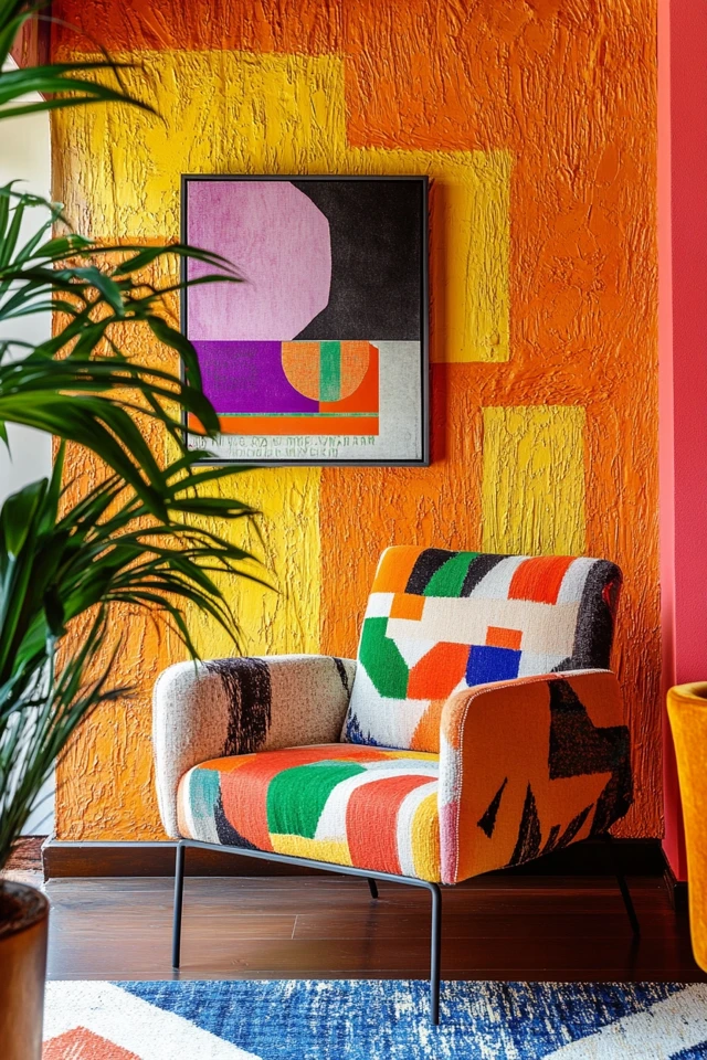 - Dynamic Contrast: Bright colors bring a playful edge to the sleek simplicity of mid-century design.