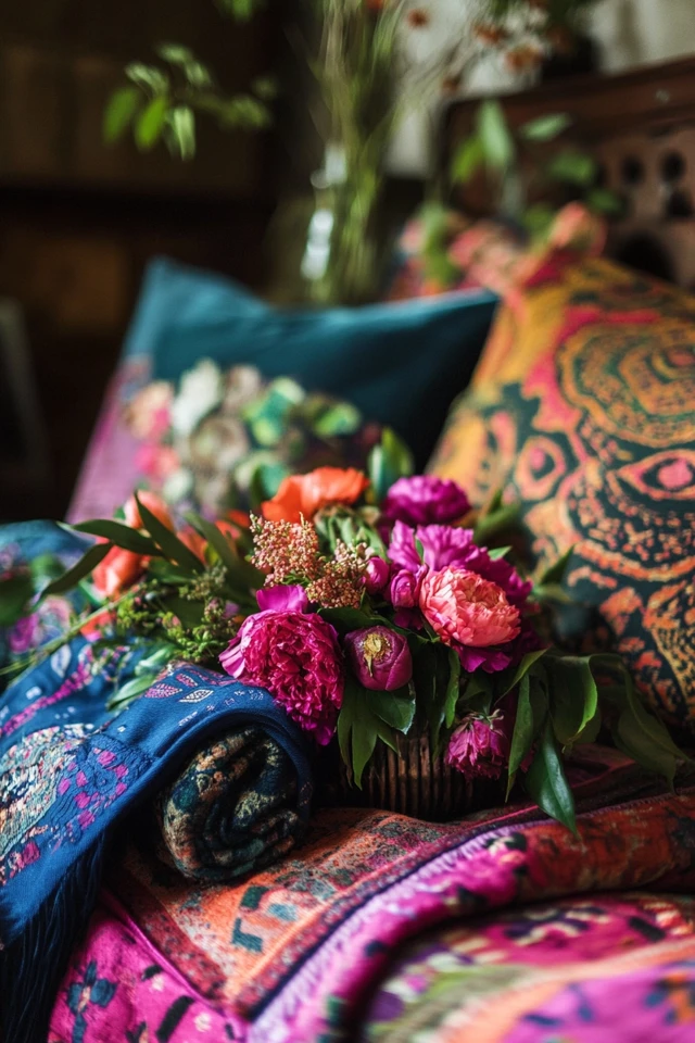 - Modern Boho: Combine jewel tones with sleek furniture and geometric patterns for a contemporary twist.