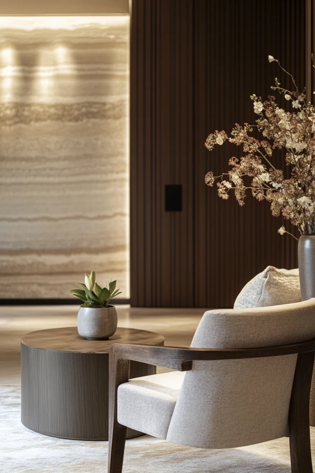 - Living Rooms: Use a streamlined sofa, a soft rug, and one statement piece, like a large artwork or a sculptural vase, for understated elegance.