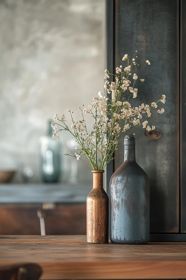 Decor pieces can tie the industrial look into your farmhouse space without overwhelming it.