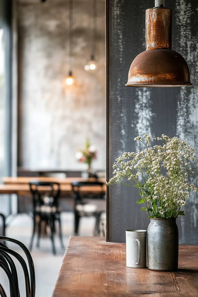 - Keep the overall look balanced by alternating industrial and farmhouse elements throughout the room.