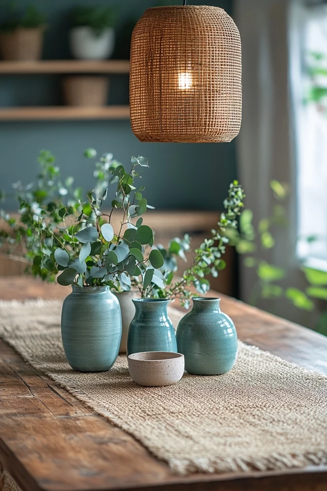- Use eucalyptus branches for a minimalist touch on dining tables or mantels.