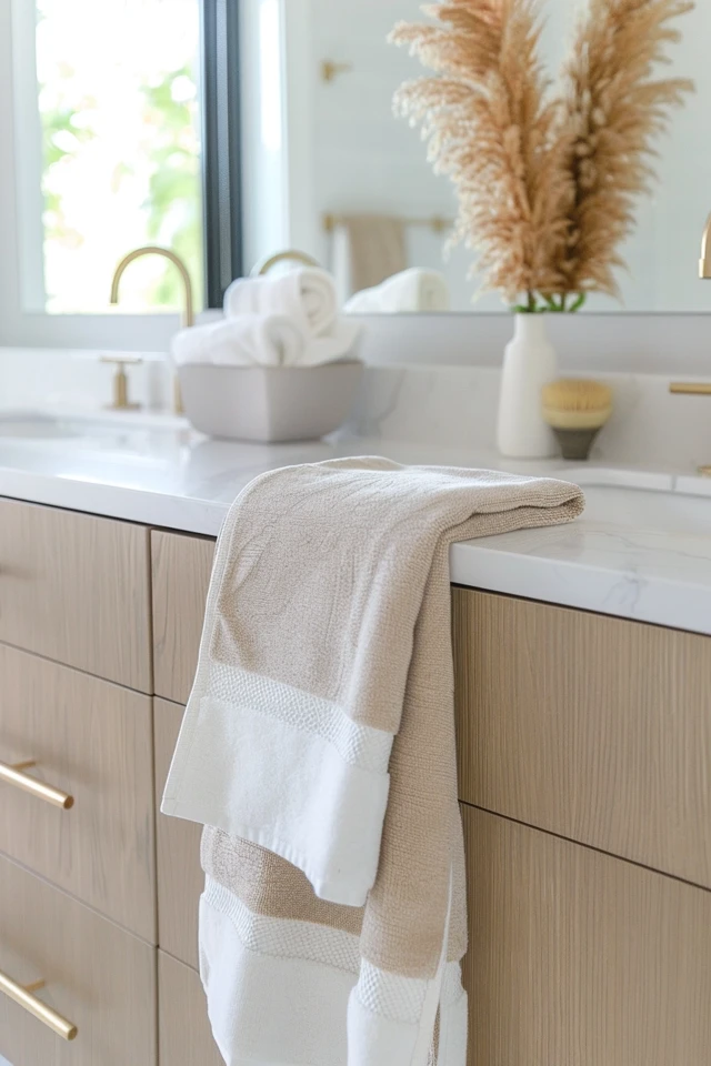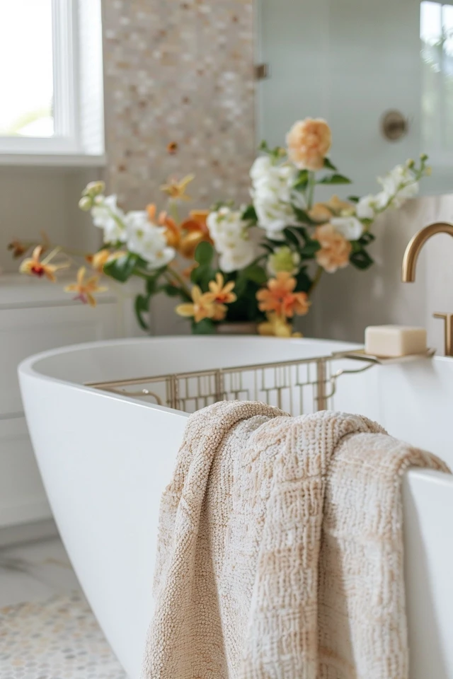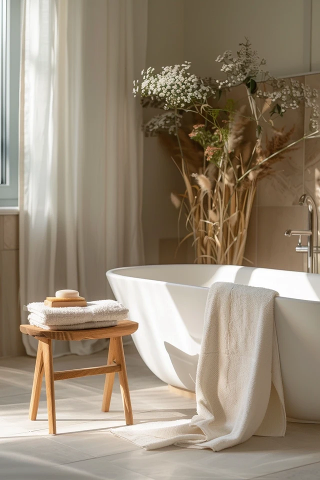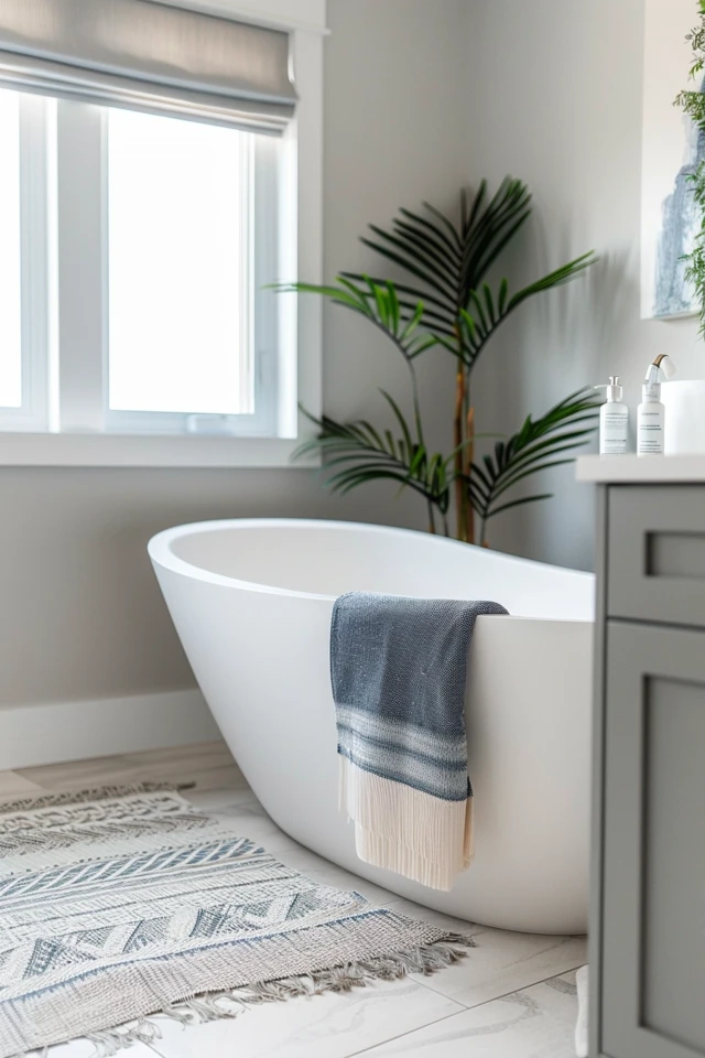 For a softer touch, incorporate organic fabrics like cotton or linen in your bath towels, shower curtains, and window treatments. These materials not only look great but also add to the overall comfort and relaxation of the space.