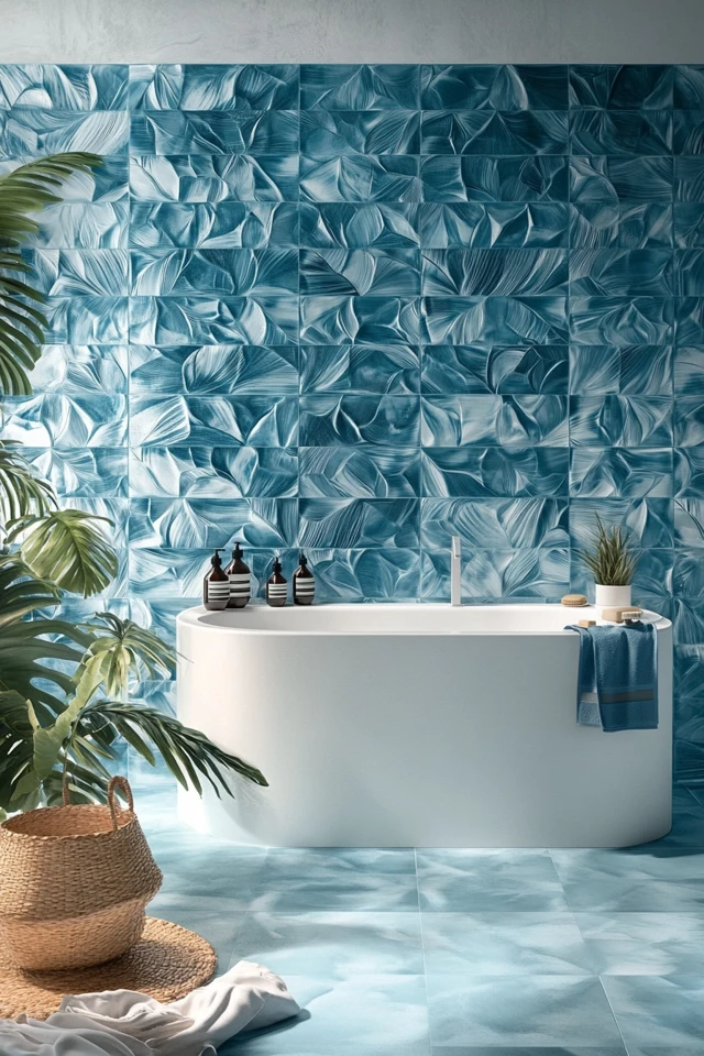Choose tiles with raised or embossed wave patterns for added texture and depth.