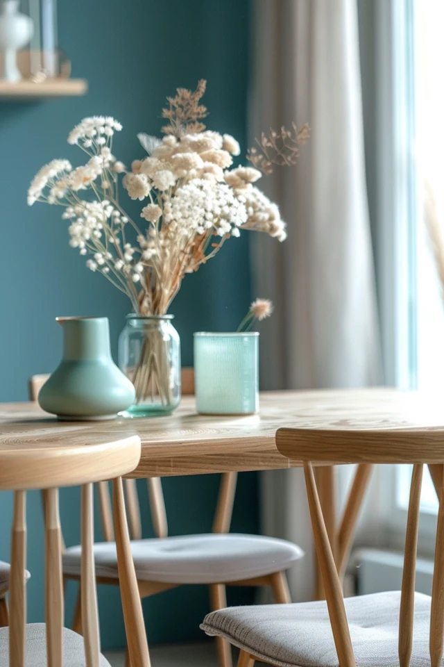 While the base colors should be light and neutral, adding accents of ocean-inspired hues can bring depth and vibrancy to your coastal dining room. Turquoise, seafoam green, and coral are excellent choices for adding pops of color that enhance the beachy vibe.