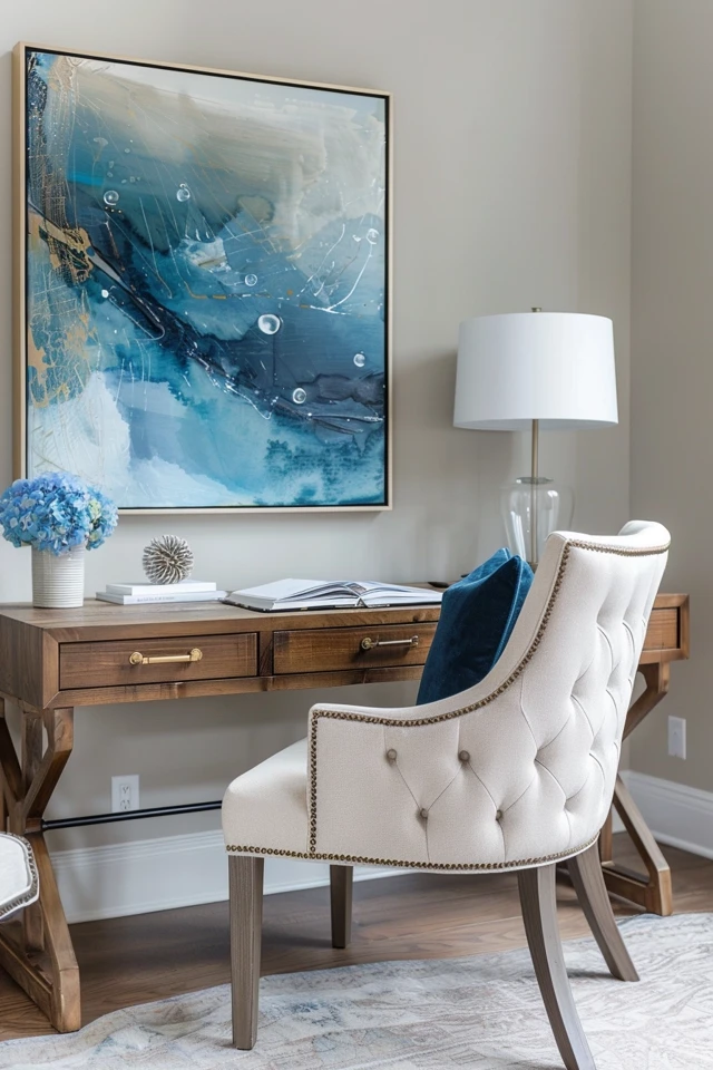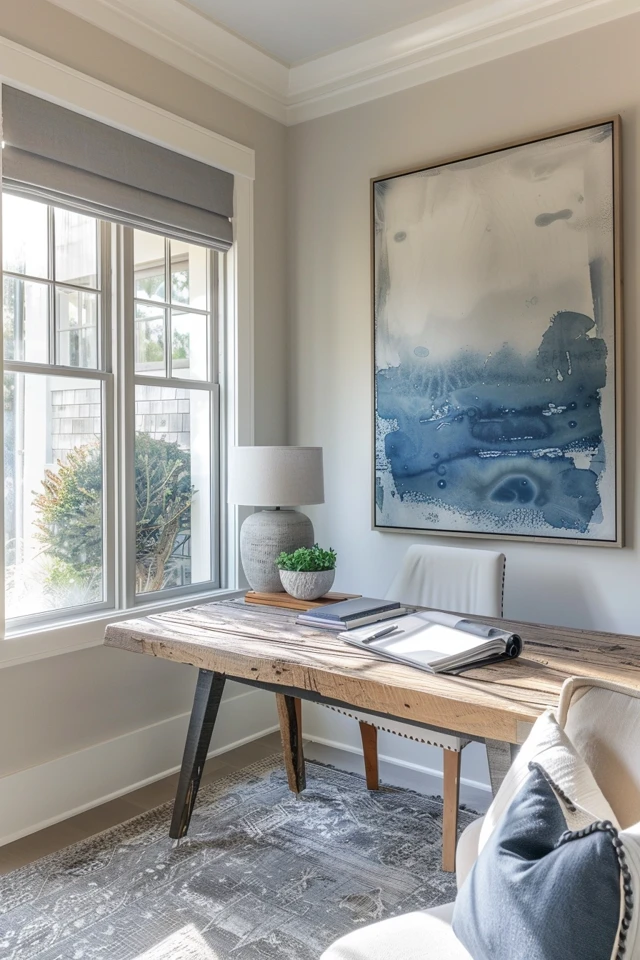 The furniture in your home office should reflect the clean lines and relaxed elegance of coastal design. Opt for pieces that combine functionality with nautical or beachy elements.
