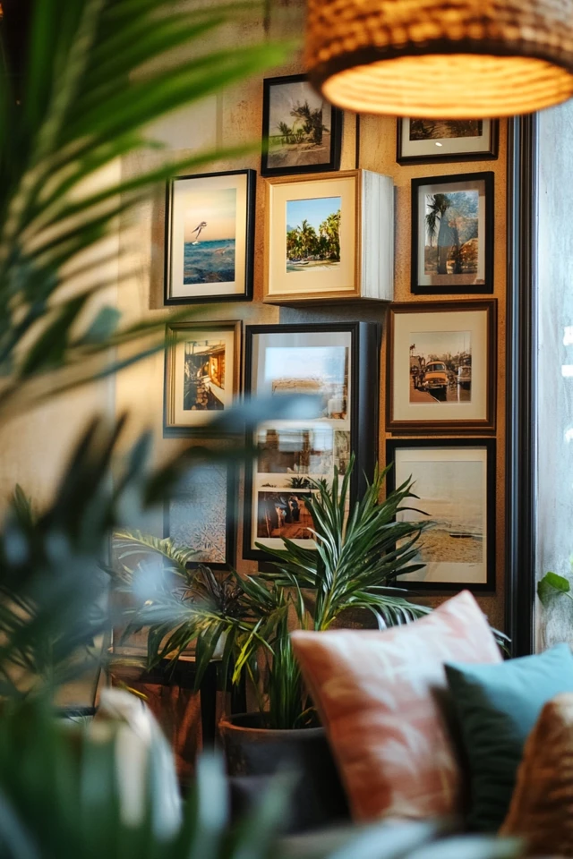- Living Room Centerpiece: Make your travel gallery the focal point of your boho living room, using a large wall or prominent corner.