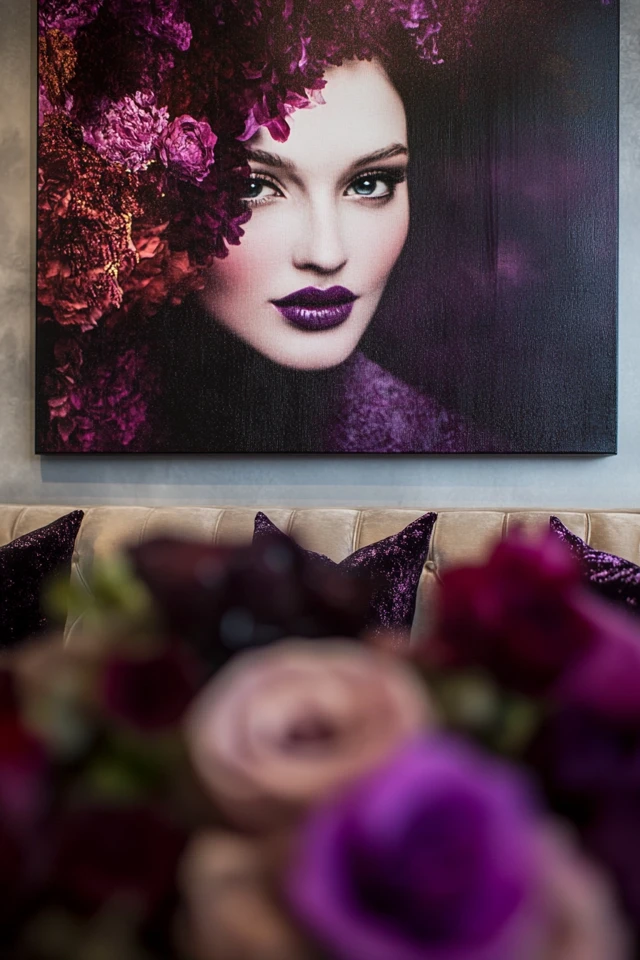- Gold Accents: Incorporate artwork with gilded frames, metallic details, or gold leaf for extra glam.