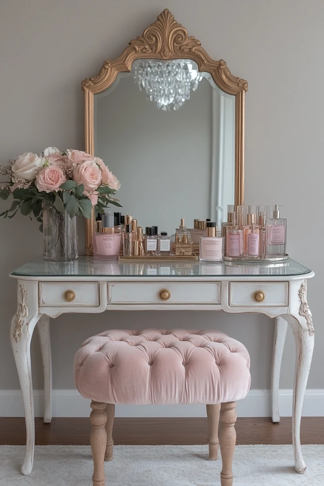 Your vanity table is the centerpiece of your glam setup, so choosing the right one is essential. Look for pieces that combine function with glamorous design details.