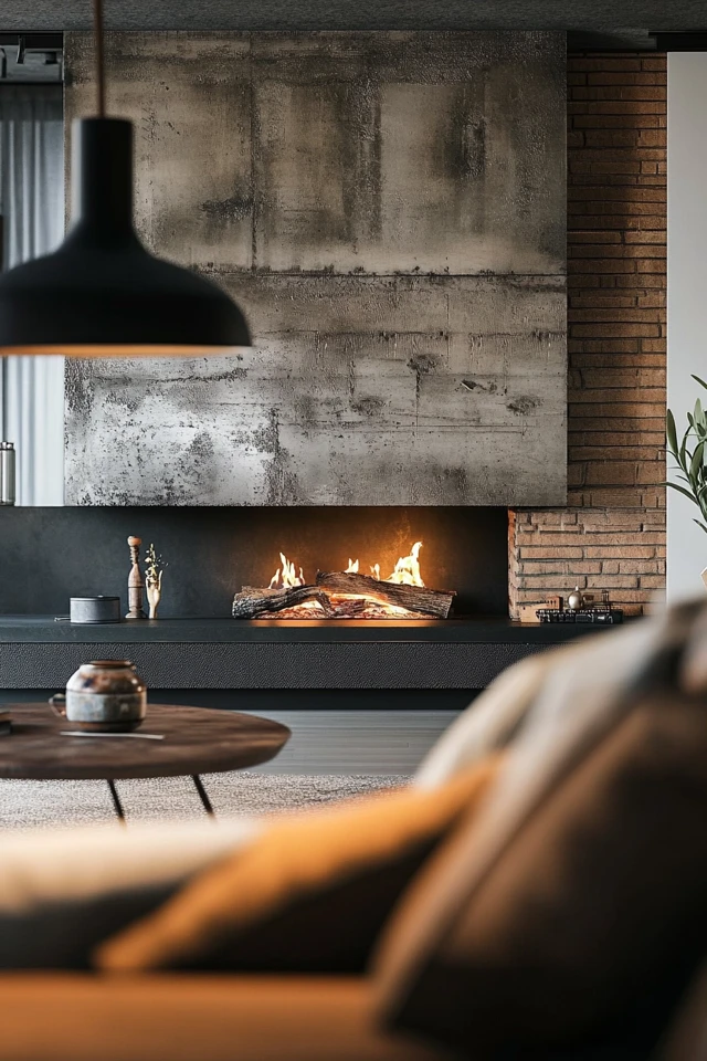 Industrial design allows you to experiment with a mix of materials, such as metal, wood, brick, and concrete, to create a fireplace that feels unique and personalized.