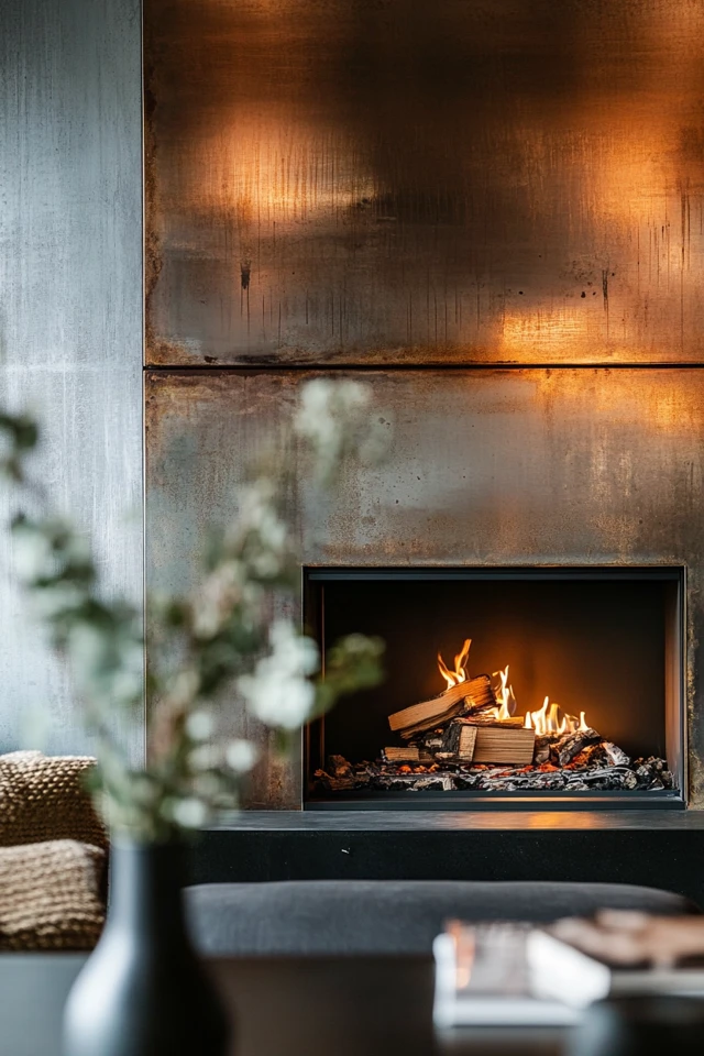 - Why It Works: Steel and metal finishes lend a sleek, contemporary edge to industrial fireplaces, capturing the utilitarian feel of the style.