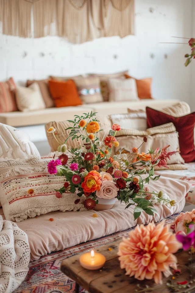 - Throws and Cushions: Use throws and cushions in various patterns and fabrics. Mix and match florals, geometrics, and ethnic prints for a bohemian vibe.