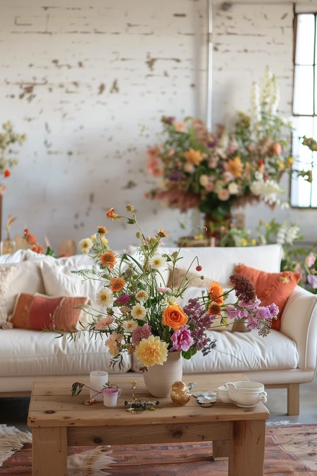 - Floral Arrangements: Make your own floral arrangements using seasonal flowers and greenery. Use mason jars, vintage vases, and woven baskets as containers.
