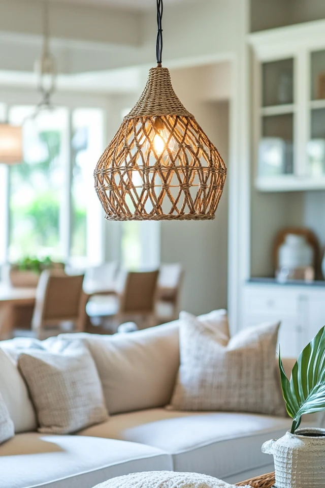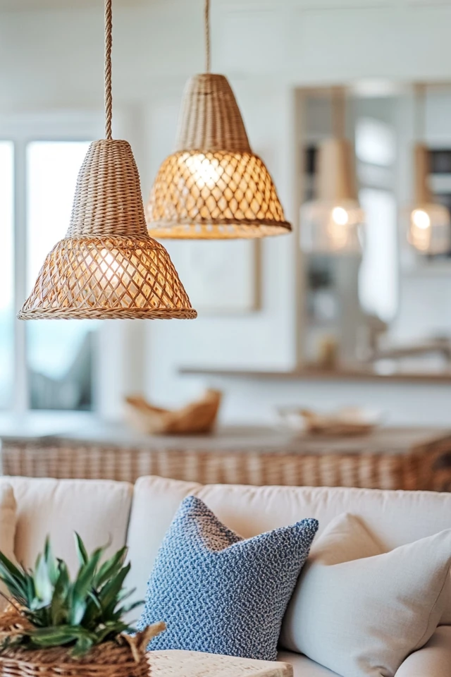 When I was redesigning my living room with a coastal theme, the lighting made all the difference. I swapped out my basic overhead fixture for a stunning rattan pendant light and added some driftwood-style table lamps. It was like flipping a switch—literally and figuratively—because the entire room felt lighter, fresher, and more connected to the ocean.
