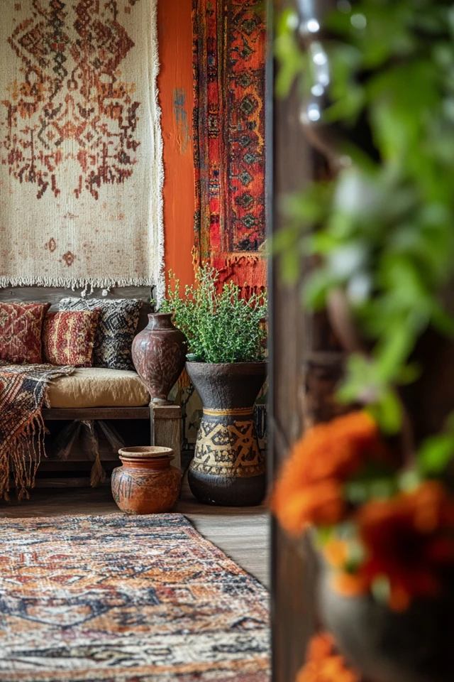 - Relaxation Zones: Design a cozy reading nook with a Moroccan pouf, an Indian throw, and a collection of artisan baskets for a serene retreat.