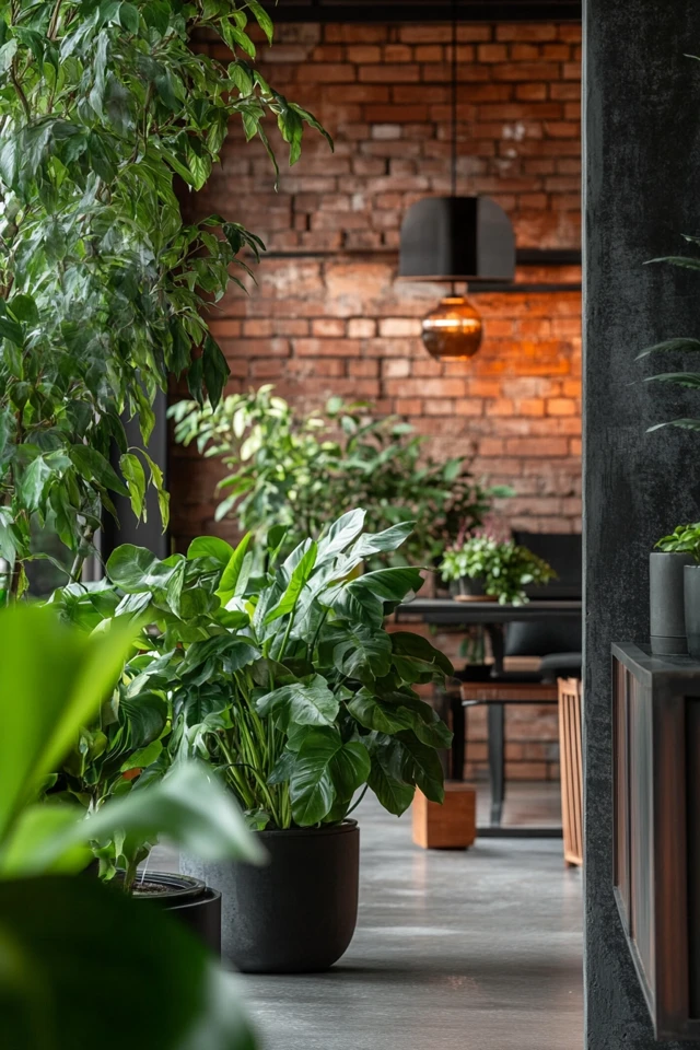 - Rough Meets Soft: Use trailing plants like ivy or pothos to drape over rough brick walls or exposed pipes.