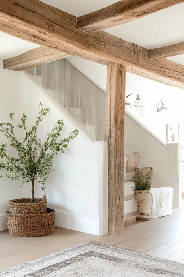 - Why It Works: Exposed wood adds rustic charm and emphasizes the farmhouse aesthetic.