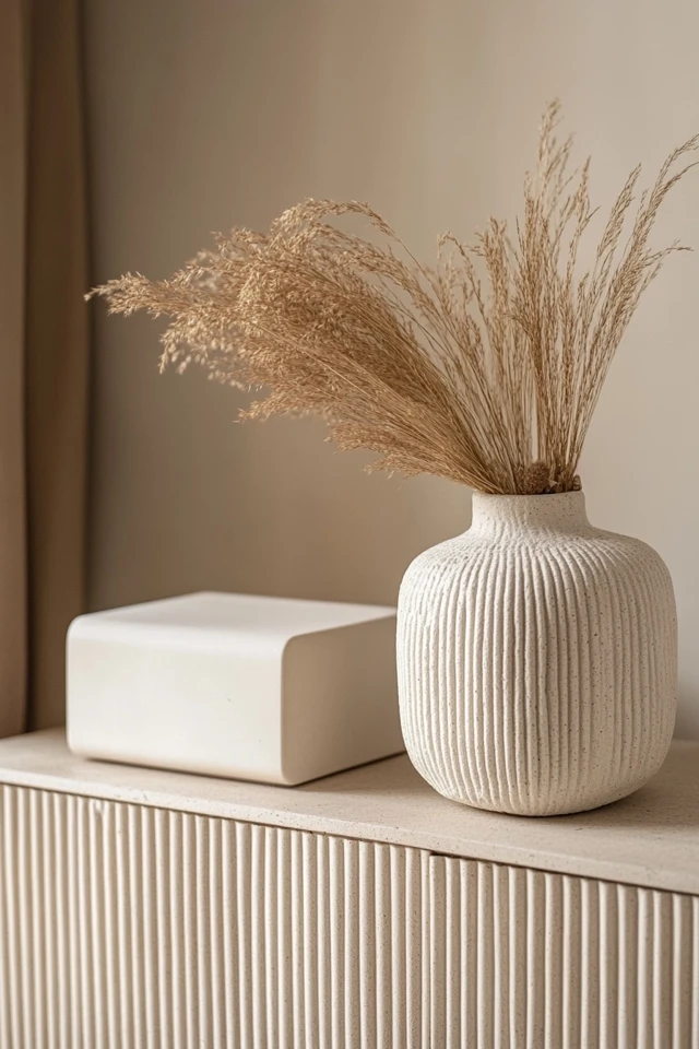 - Add ceramic or stone decor, like vases or candleholders, for an earthy vibe.