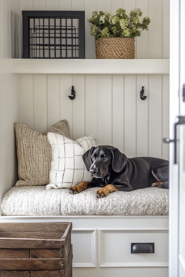 - Modern Farmhouse Dog Area: Opt for sleek lines, neutral tones, and minimalist decor.