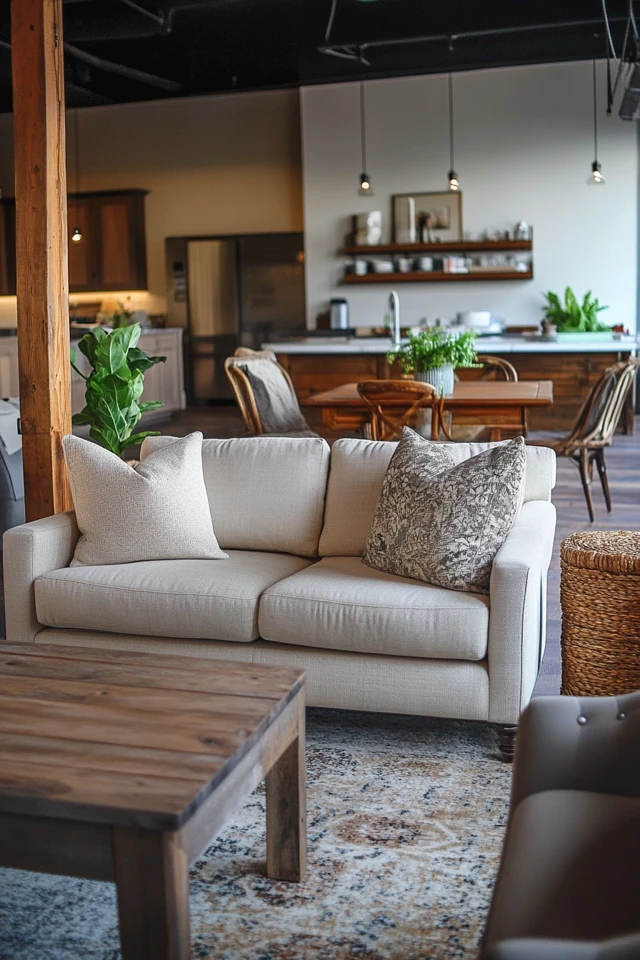 - Design: Combine industrial loft elements like exposed brick or metal with soft farmhouse decor like textiles and wood accents.
