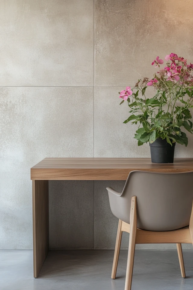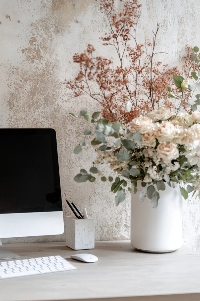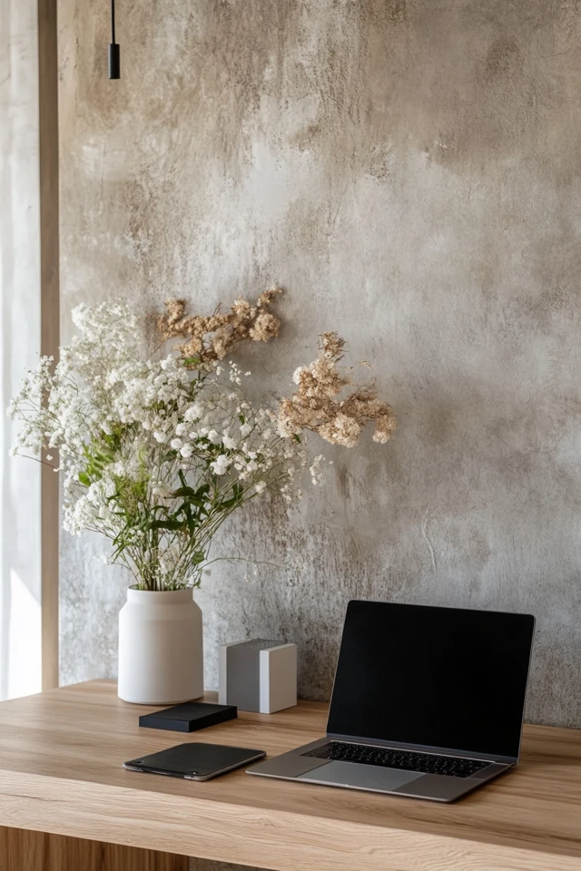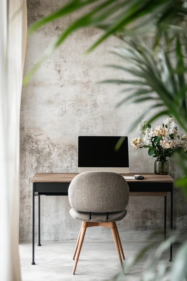 Add warm lighting, a small plant, or a textured throw to your chair to make your workspace feel inviting while staying minimalist.