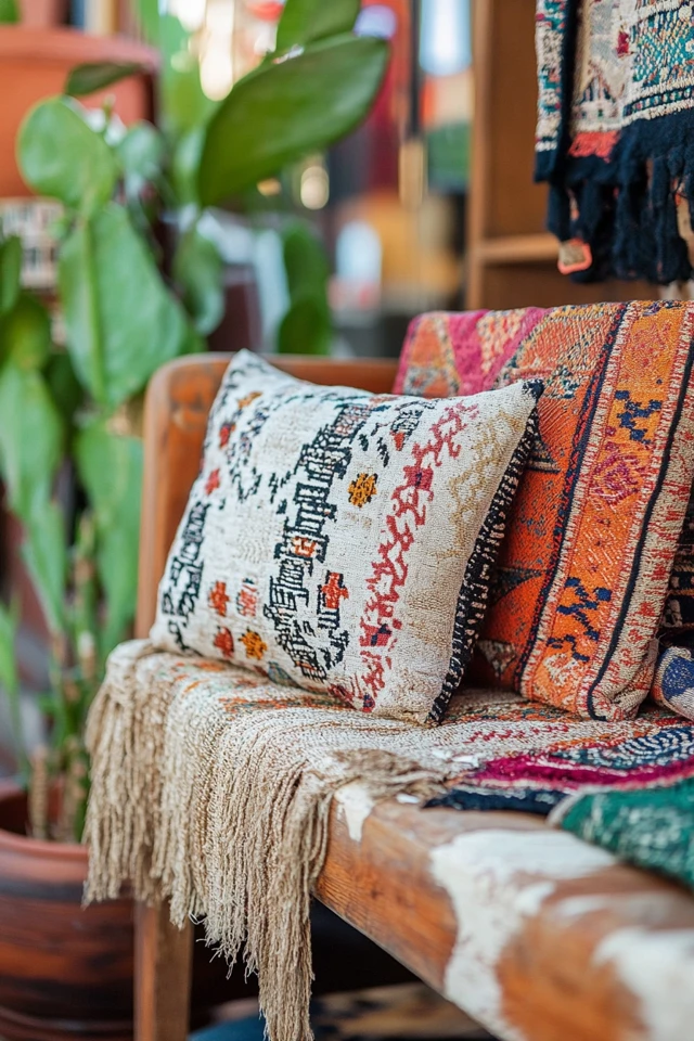 - Why It Works: Textiles are an easy way to bring global flair and softness to your space, making it feel inviting and eclectic.