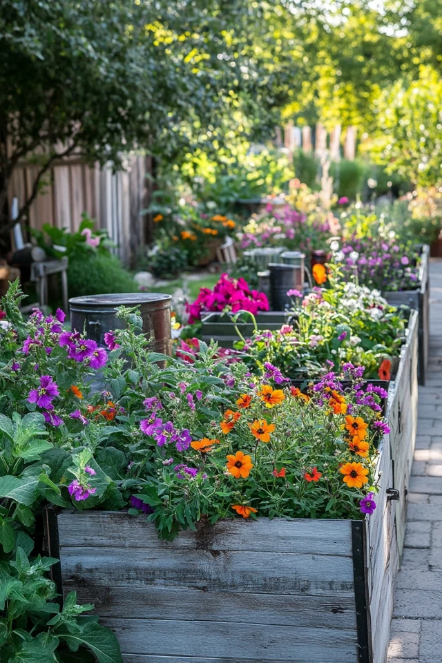 - Why It Works: Raised beds add structure to your garden while repurposing materials in a functional way.