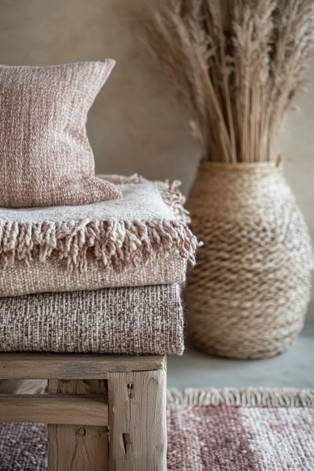Focus on a few key elements, like a textured rug, a woven basket, and a knit throw, to add depth without overwhelming the space.