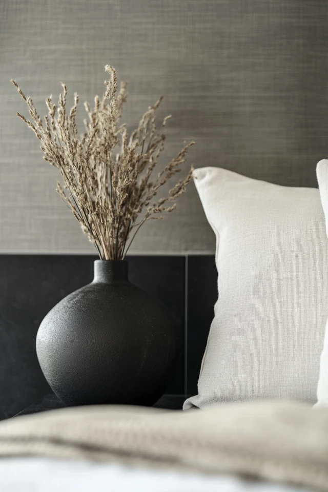 Focus on contrast through texture, tone, and material. Add sculptural elements, subtle patterns, and metallic accents to keep the space dynamic.