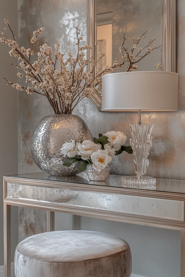 - Mirrored Furniture: Side tables, consoles, and dressers with mirrored surfaces.