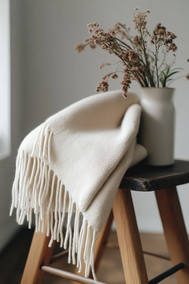 Rotate throws to reflect the season, like lighter linen blankets in summer and heavier wool ones in winter.