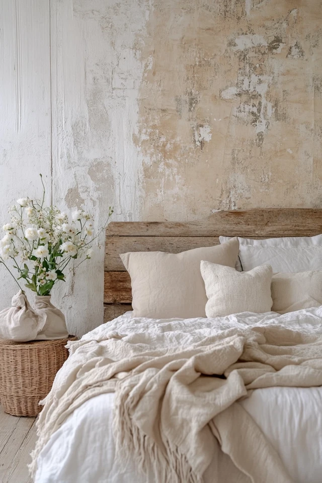 Natural textures add warmth and depth to your farmhouse bedroom.
